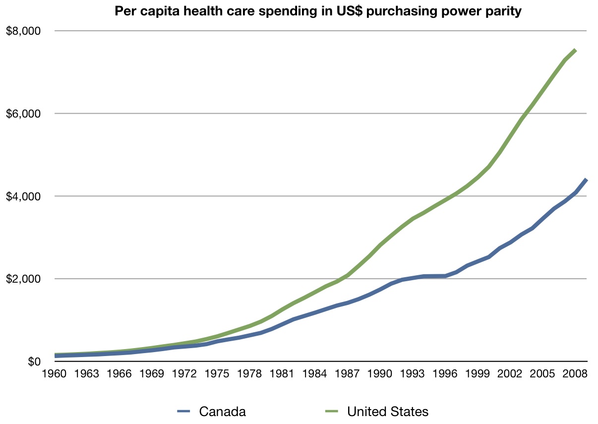Paul Krugman has been on a tear the last few days with a number of posts defending Canada’s Medicare. This was all leading up to his latest column, where he questioned why Medicare should be unsustainable in this country, when it’s sustainable there.