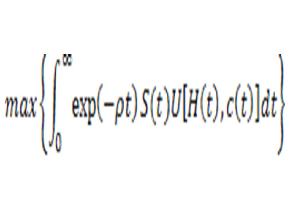 Okay that looks forbidding. Don’t worry if the calculus is gibberish to you. I can’t get into the mechanics, but the basic issues can be expressed in plain English. At any time t, one enjoys a health status H(t) that may influence prior health habits and medical investments. One chooses some level of personal consumption c(t) that generates an immediate utility U(c(t),H(t)). The function S(t) represents a survival function. At any given moment, one has an associated mortality risk, which reflects age, medical technology, and various personal and social investments in health. One makes health and non-health choices over time to maximize a lifetime stream of utilities, accounting for personal impatience, investment returns, and other financial constraints.