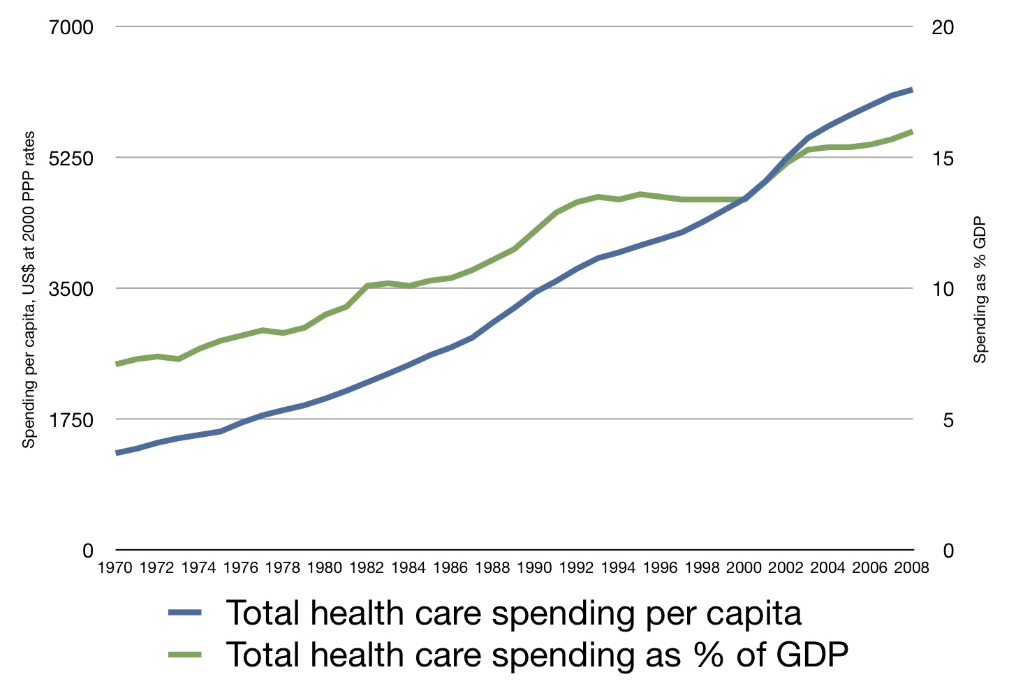 And here’s one more just for Austin. It’s both spending per capita and spending as a percentage of GDP on the same chart. There are two axes here: