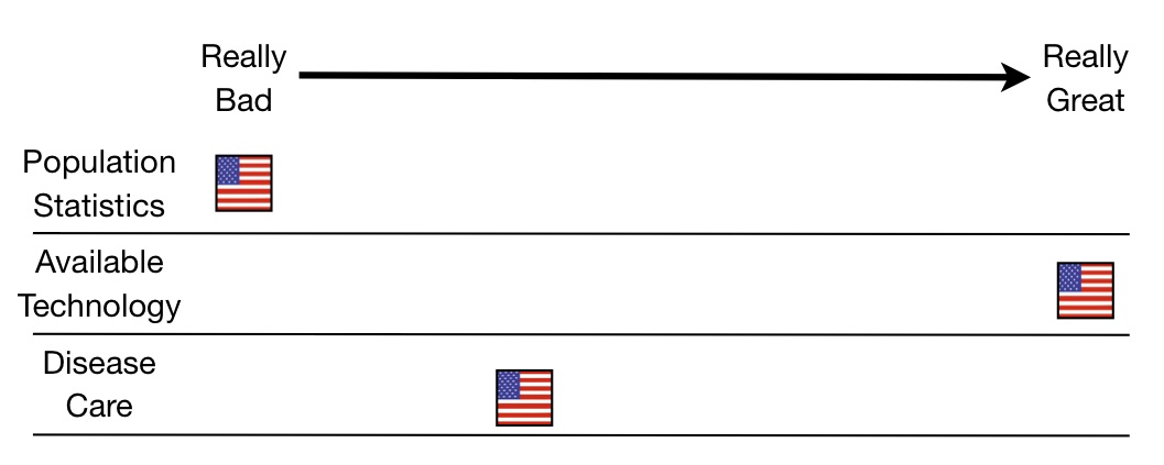 Here’s where we are supposed to shine. Many people believe that the true strength of our health care system lies in our ability to treat life-threatening illness. In effect, they believe that our health care system succeeds by preventing death from major diseases. Those are measurable data.