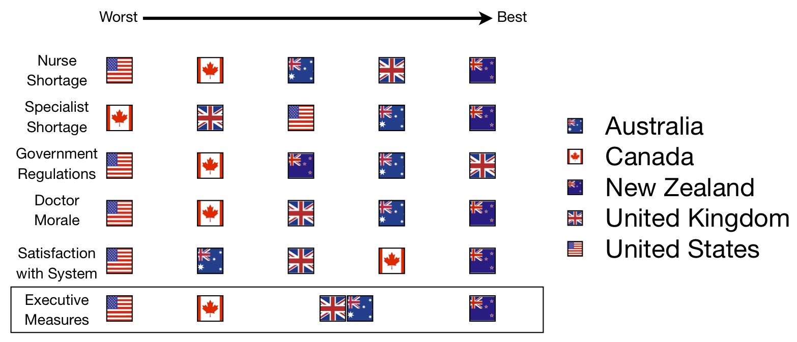 We can get down to more specifics, though. How do hospital executives rate physician morale in various countries?