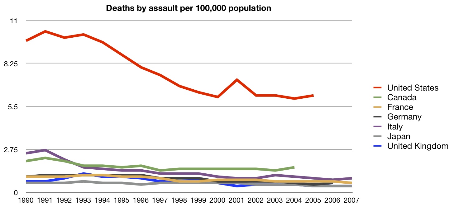Yes, we have more, but the number of actual deaths pales in comparison to total deaths per year (almost 700 per 100,000 population).