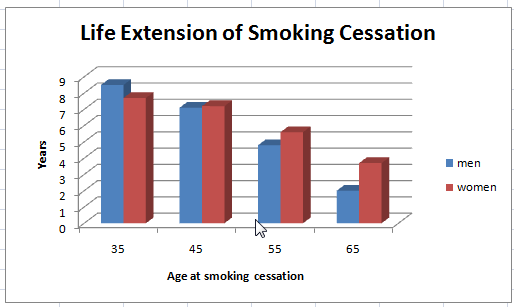 I am going to do some follow up posts on the discussion last week of how to use smoking cessation research to answer practical questions about how much longer a person would live if they stopped smoking. The point of the paper on which the post was based was to denominate the benefits of smoking cessation in a format that was readily understandable with a goal of providing information that could help spur smokers to attempt cessation. We felt that life years gained from cessation was about as clear as it could get.