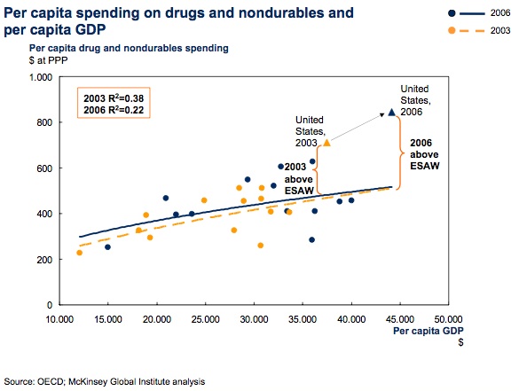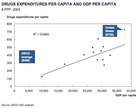 Yes, the United States spends more for its pharmaceuticals than you would expect given our wealth.