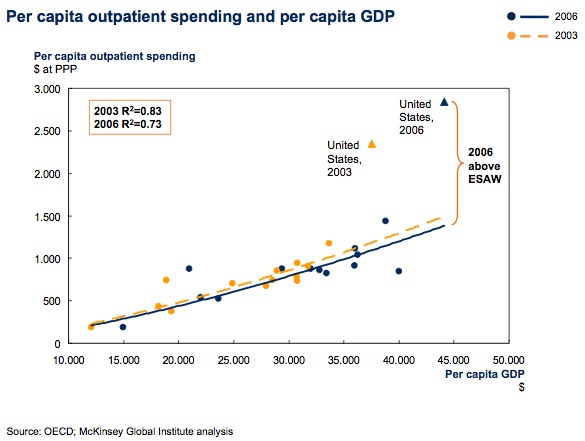 Remember, these posts are going to follow a common theme. I am going to highlight how the United States is spending more than you’d expect given our wealth. Much of this comes from the McKinsey & Company study, Accounting for the cost of health care in the United States.